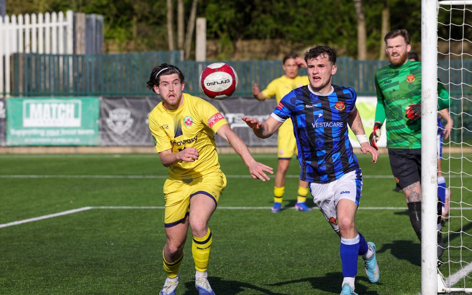Defences were on top for the remainder of the first half with Trafford skipper Harry Norris heading over from a Kyle Worsley free kick in time added on.